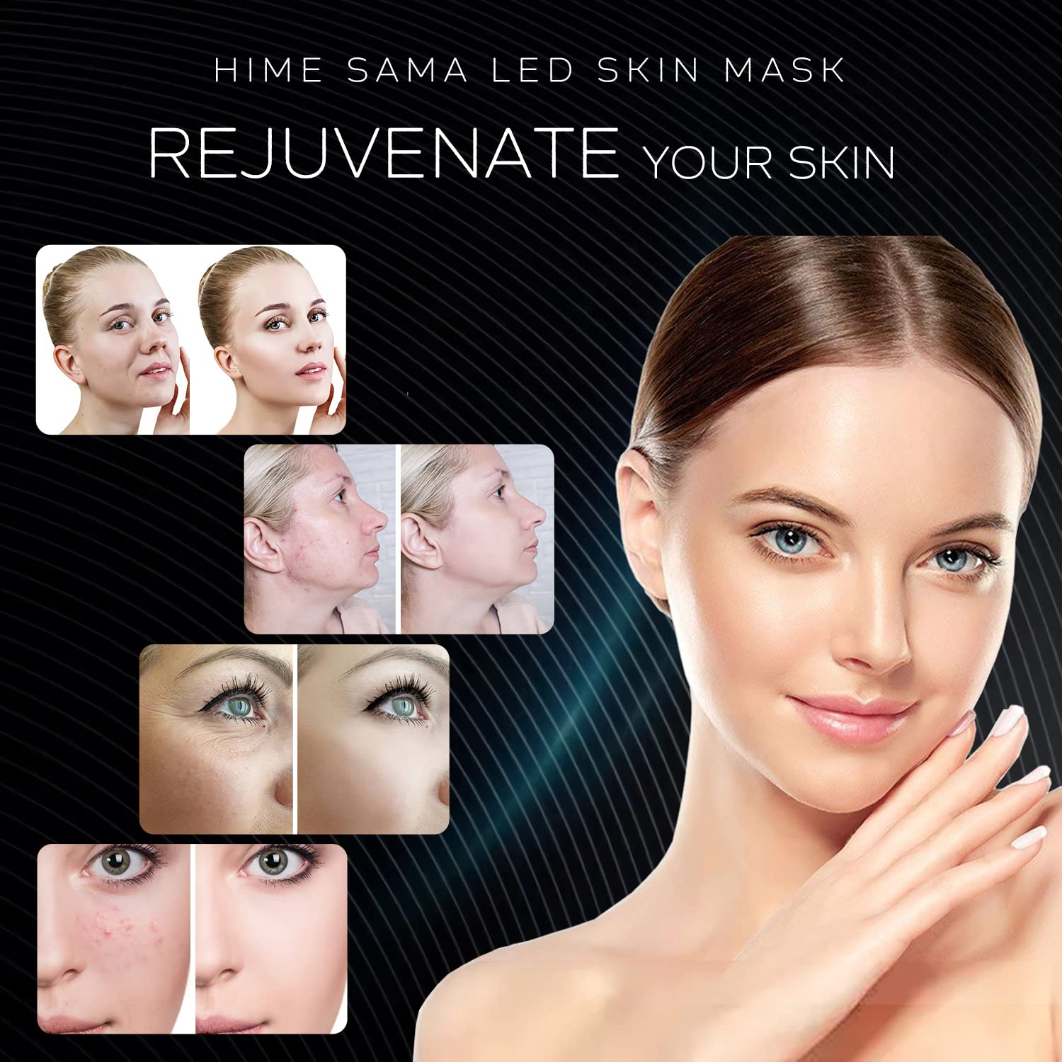 HIME SAMA LED Face Mask for Skincare - Pro 7 Color LED Skincare Mask, Delay Skin Aging, Maintain Skin Firmness and Elasticity, Professional Skin Care, Higher Safety,Portable for Home and Travel Use