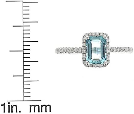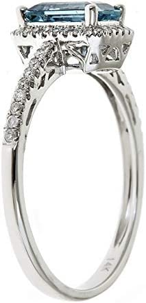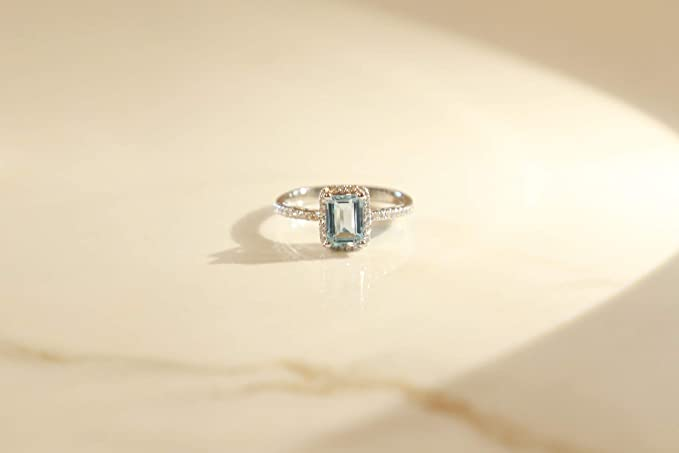 Gin and Grace 10K White Gold Genuine Aquamarine Ring with Diamonds for women | Ethically, authentically & organically sourced (Emerald-cut) shaped Aquamarine hand-crafted jewelry for her.