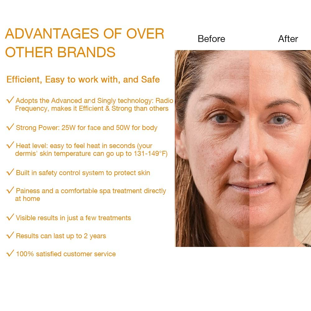 • MORE COLLEGAN, LESS SAGGING AND WRINKLES FOR FACE/BODY: MLAY radio frequency facial and body skin tightening machine is not only a face machine but also a body machine, it is more simple and easy to use with 2 probes: for eyes, forehead, cheek, nasolabial fold, face, jawline, neck, arm, belly, waist, leg, thighs, butt, stomach... Helps to improve skin texture and elasticity, diminish the appearance of fine lines, dullness, Wrinkles, crow's feet, stretch marks, tightens saggy skin, and more!